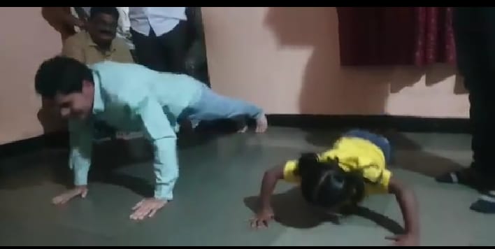 यावेळी श्रीमंत विश्वजीतराजे यांनी कु,स्वरा भागवत हिच्या बरोबर पुशप काढून खेळाडू वृत्तीचे दर्शन घडवले, व उपस्थित सर्वांना आश्चर्याचा धक्का दिला,
